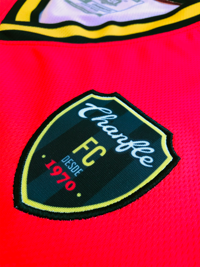 Con logotipo de aniversario y parche frontal. Tela deportiva. Sublimado y bordado. Distintivo CH de producto oficial.